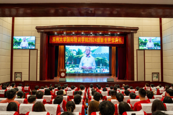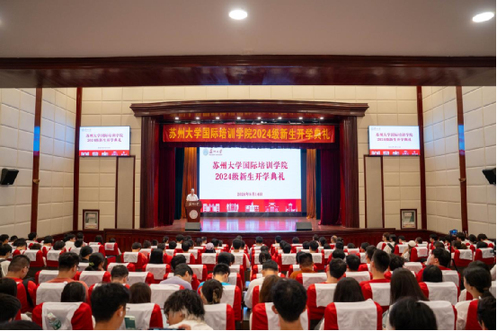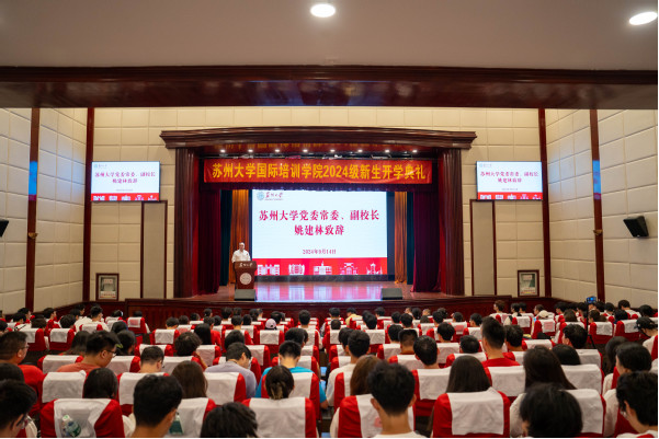 9月14日上午蘇州大學(xué)國際培訓(xùn)學(xué)院2024級(jí)新生開學(xué)典禮在天賜莊校區(qū)敬賢堂隆重舉行。蘇州大學(xué)黨委常委、副校長姚建林,國際培訓(xùn)學(xué)院院長繆世林、常務(wù)副院長董娜、副院長胡龍華,各培養(yǎng)學(xué)院分管領(lǐng)導(dǎo)、專業(yè)主任及全體項(xiàng)目老師、2024級(jí)全體新生出席了開學(xué)典禮。典禮由繆世林院長主持。
