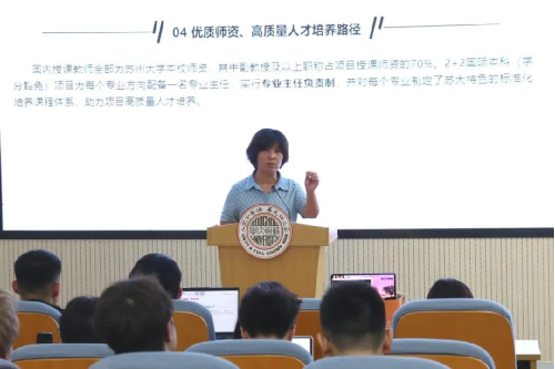 為使同學(xué)們更好適應(yīng)大學(xué)生活,9月11日下午,蘇州大學(xué)國(guó)際培訓(xùn)學(xué)院2023級(jí)新生入學(xué)教育系列活動(dòng)之“院長(zhǎng)第一課”在北校區(qū)工科樓一樓報(bào)告廳順利舉行。常務(wù)副院長(zhǎng)董娜以“你好,新同學(xué)”為主題,為2023級(jí)小萌新們介紹了蘇州大學(xué)國(guó)際培訓(xùn)學(xué)院的發(fā)展歷程和專業(yè)發(fā)展方向,對(duì)新同學(xué)未來(lái)的學(xué)習(xí)生涯提出了希望和要求。