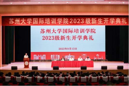 9月13日上午,蘇州大學(xué)國(guó)際培訓(xùn)學(xué)院2023級(jí)新生開(kāi)學(xué)典禮在天賜莊校區(qū)存菊堂隆重舉行。本次開(kāi)學(xué)典禮采用線上線下結(jié)合的方式舉行,全體新生、家長(zhǎng)及校友共同見(jiàn)證這一難忘時(shí)刻。
