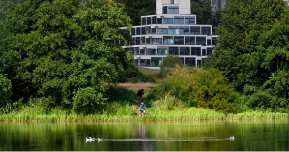 UEA 校園占地320英畝,坐落于風景如畫的綠地公園之上。校內(nèi)諸多建筑被譽為英國20世紀晚期建筑的杰出代表,如獨具特色的